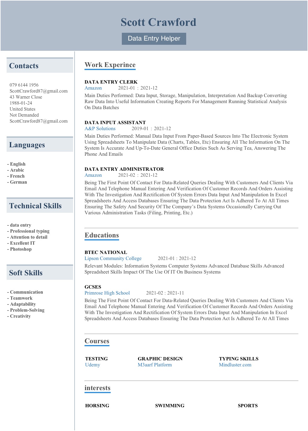 Soft Skills Like : Communication - Teamwork - Adaptability - Problem-Solving - Creativity - Work Ethic
